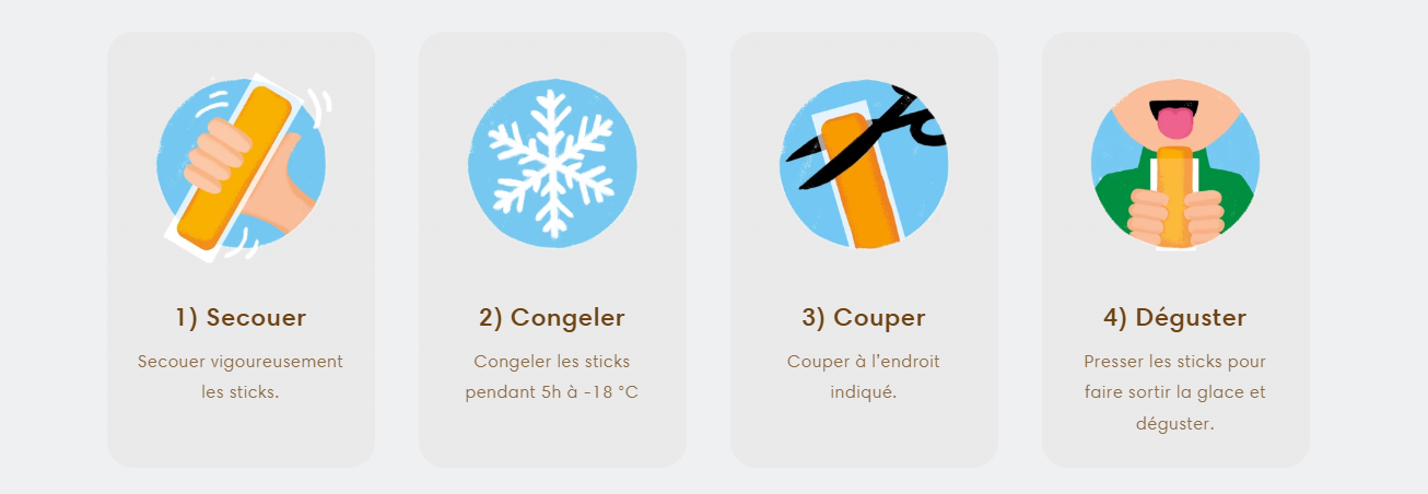 ❄️ Pas de souci avec le congélateur – Il suffit de conserver les Fruity Ice Sticks à température ambiante puis de les congeler 5h avant de les déguster. Parfait pour les congélateurs déjà bien remplis!
